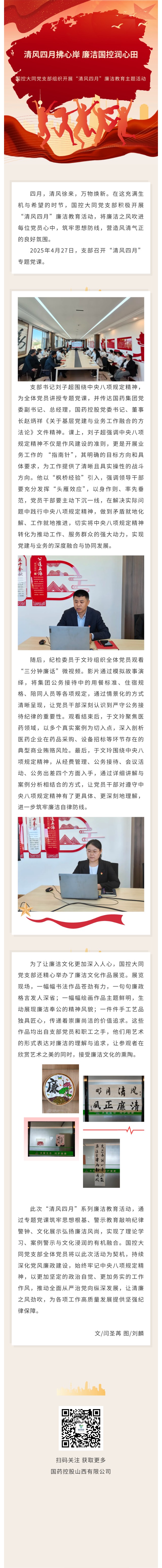 清风四月拂心岸 廉洁国控润心田 ——国控大同党支部组织开展“清风四月”廉洁教育主题活动