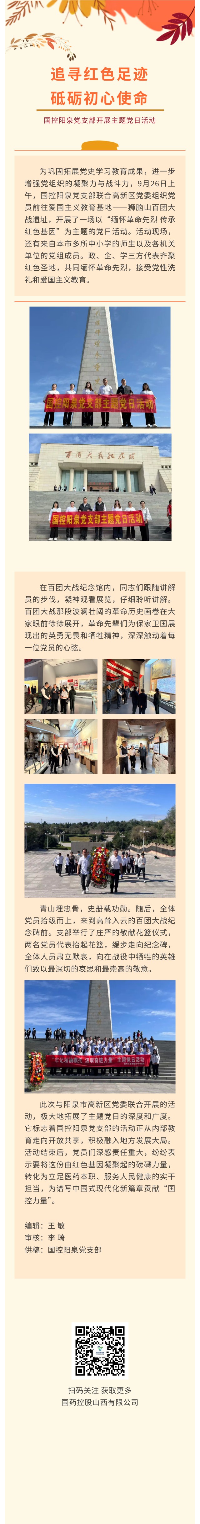追寻红色足迹 砥砺初心使命 ——国控阳泉党支部开展主题党日活动