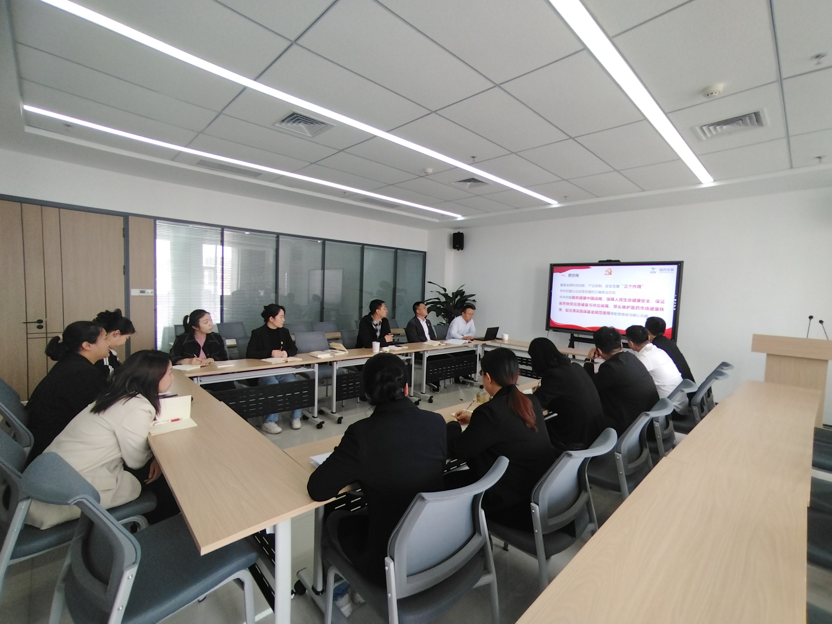 2025 年 4 月 24 日,国控吕梁党支部积极响应上级党组织号召,组织班子成员开展专题学习活动,深入研读国药集团党委副书记、总经理,国药控股党委书记、董事长赵炳祥《关于基层党建与业务工作融合的方法论》文件精神,旨在以党建为引领,全面提升企业经营管理水平,推动公司在吕梁地区实现跨越式发展。