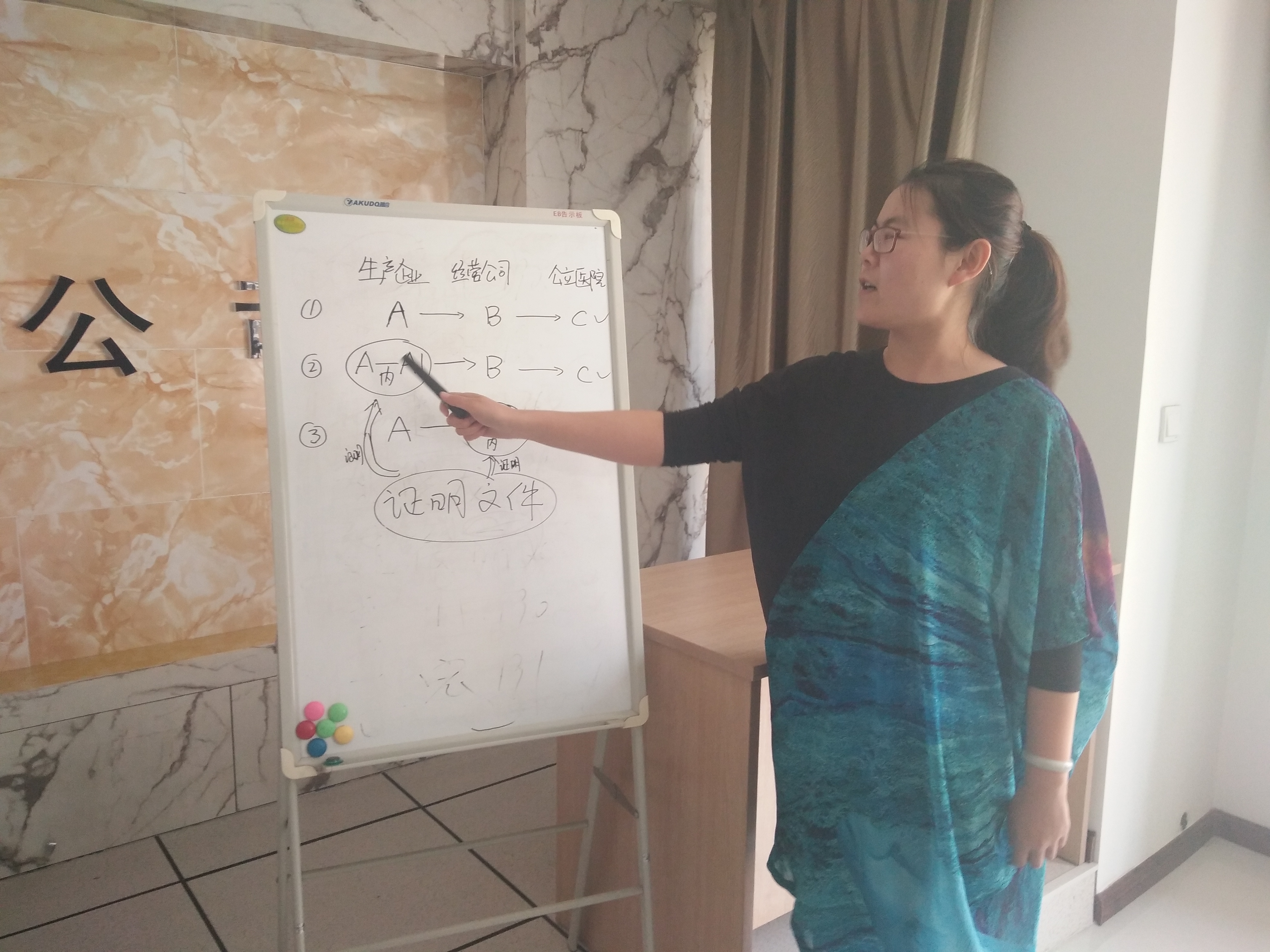 同时,于经理还对6月1日大同公立医院执行两票制以来,公司业务中出现的各种问题做了一一解析,梳理了公司相应的业务流程调整,并对CMS系统操作调整部分进行了说明。此外,还带领大家一起了解了上游提供的符合“两票”的证明文件。