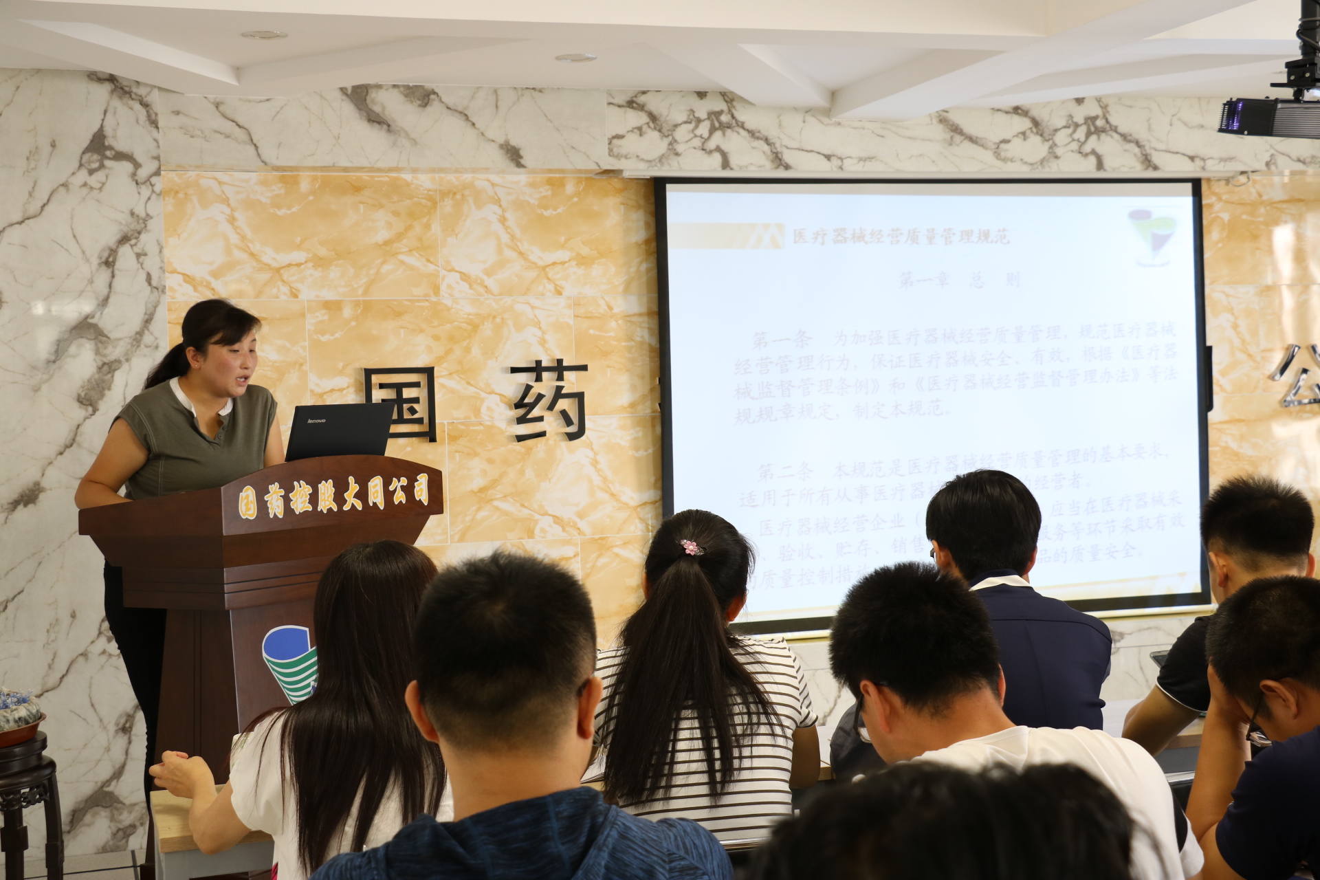 首先,刘经理对《医疗器械监督管理条例》、《医疗器械经营监督管理办法》、《医疗器械经营质量管理规范》以及《医疗器械说明书及标签管理规定》等内容进行讲解。带领参培人员特别是医疗器械和体外诊断试剂管理小组成员明确监管重点、防范疏漏环节、规范工作流程。