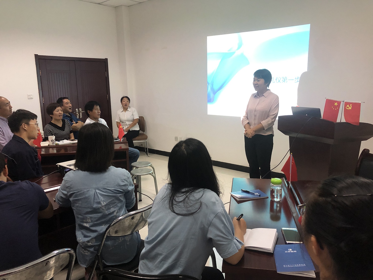 上午,姚部长系统讲解了职场礼仪等方面的相关知识,模拟工作中的各种情景进行现场演练,详细拆分情景中的各个环节,鼓励各小组成员头脑风暴,共同分析实际工作中可能遇到的问题,并对日后工作中需要注意的地方做了指导性建议。