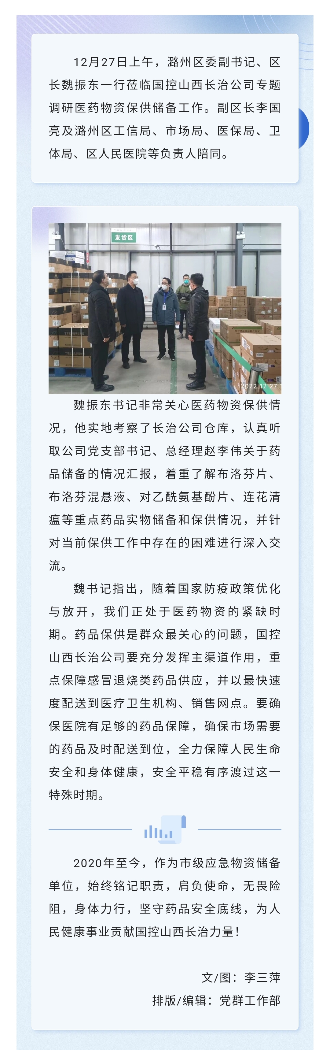 潞州区委副书记、区长魏振东一行莅临国控山西长治公司调研