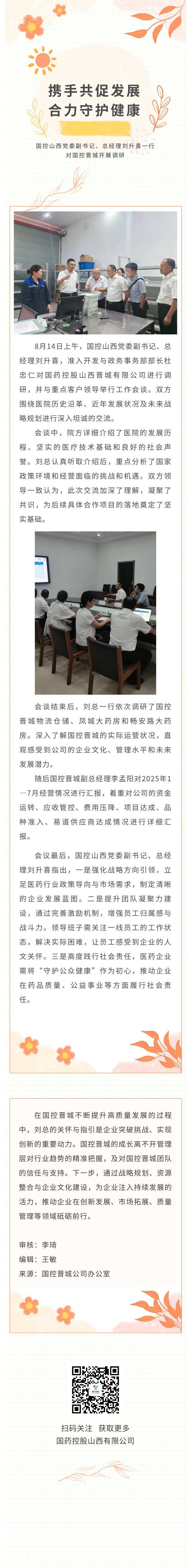 携手共促发展,合力守护健康 国控山西党委副书记、总经理刘升喜一行对国控晋城开展调研